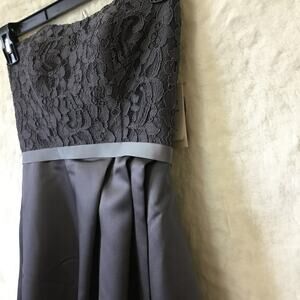 This elegant strapless gown features a lace bodice with a sweetheart neckline, beautifully accented by a delicate ribbon belt at the waist. The satin ball gown skirt creates a flattering silhouette, and the side slit adds a touch of drama and sophistication. Fully lined with a back zipper closure for a seamless fit. Perfect for weddings, galas, or any formal occasion.