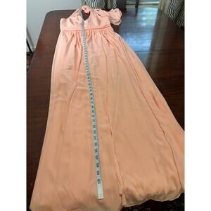 David's Bridal Bridesmaid Dress Size 10 Bellini Orange Halter Flowy V-Neck 19998