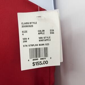 David’s Bridal Bridesmaid Satin Strapless Bridal Gown In Apple Red Size 4