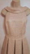 Chic cream and gold textured cocktail dress. Sleeveless and elegant, ideal for special occasions. Deep V-back.
