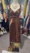 This stunning brown sundress from David's Bridal features Empire Waist with sheer sash and V-neckline, perfect for a cocktail occasion. The dress has an elegant draping and a lustrous sheen, adding a touch of luxury to its flowing silhouette.