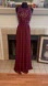 David’s Bridal Burgundy Chiffon Skirt with Sequin Embellished Bodice Dress