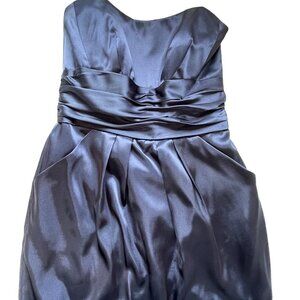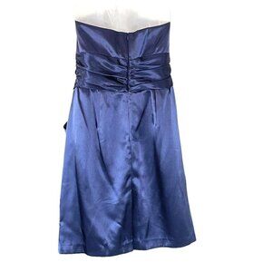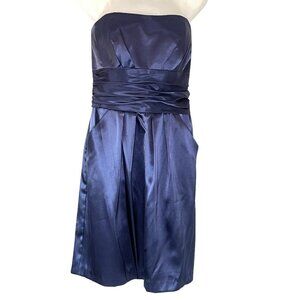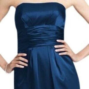 David's Bridal Charmeuse Navy Blue Strapless Sheath with Cummerbund and 2 Side Pockets Slit in Back Mini Style # 83707