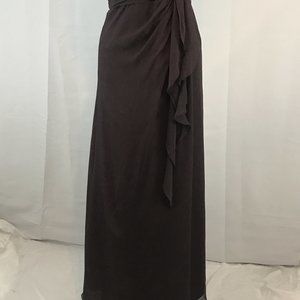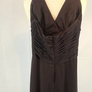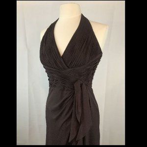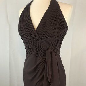 This halter dress is perfect for any event, and flattering on any figure. It's all in the details, and they're all in the right place. Soft crinkle chiffon creates a flowing silhouette and beautifully draped cascade detail. Crisscross ruched bodice creates a feminine hourglass shape.