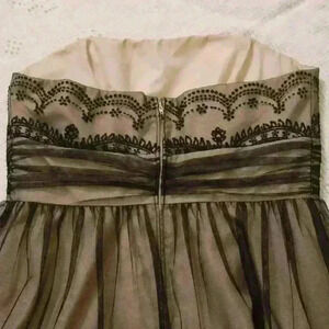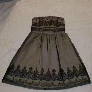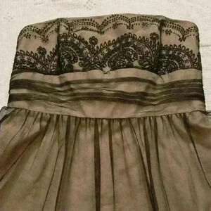 Sheer black dress with sparkly beaded design on bodice and hemline.
