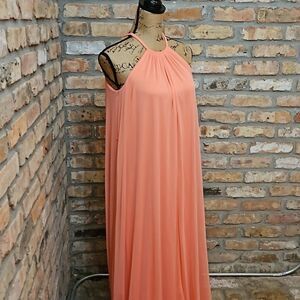 David's Bridal Coral Reef Halter Style pull on maxi gown, hook and eye closure, size 0. Perfect for Bridesmaid, Wedding, Special occasion dress!Excellent pre loved condition, measurements in pics, smoke free home, ships next day. Bundle and Save!