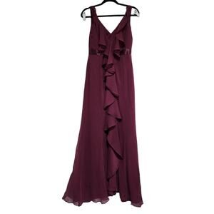 David’s Bridal Crinkle Chiffon Ruffle Gown – Wine Women’s Size: 6