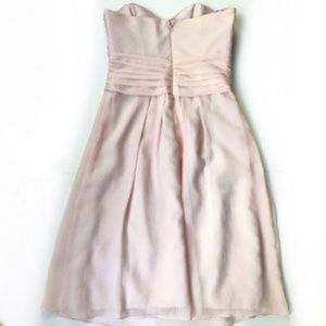 Features a sweetheart neckline, hidden back zipper and figure flattering rubbing detail.
