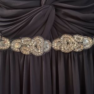 Navy blue David’s Bridal dress with crystal belt embellishment. Was used as bridesmaids dress but would make a beautiful black tie event dress or prom dress.