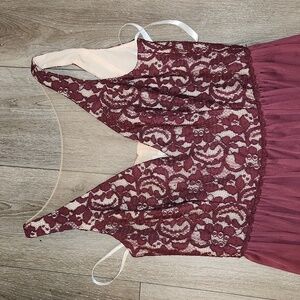 David Bridals Dress Wine color Size 8 split down the left leg