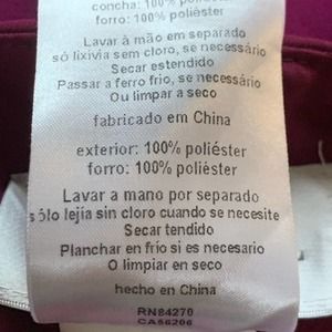 Fully lined. Back zip. Imported polyester. Dry clean only.