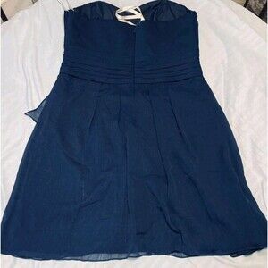David's Bridal Dress Sz 2 Navy Blue Strapless Chiffon Brides Formal Cocktail