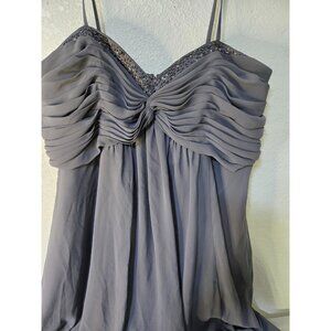 David's Bridal Dress Womens 18 Gray Beaded Empire Waist Chiffon Gown Formal
