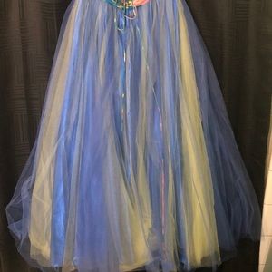 No stains. In like new condition other than the one little fraying edge on the corset tie