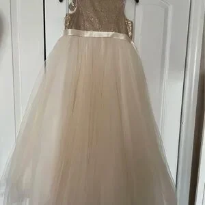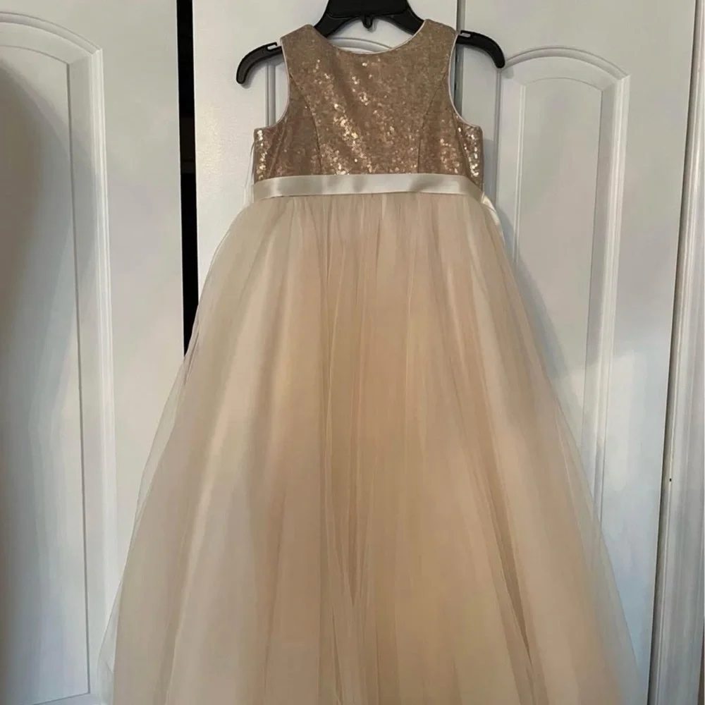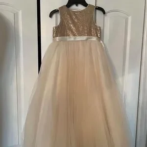 David’s Bridal Elegant Gold and Cream Kids Dress