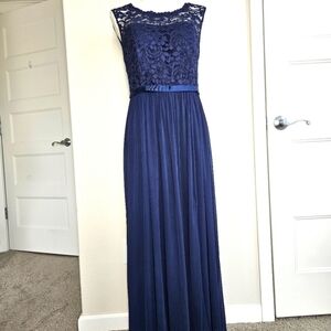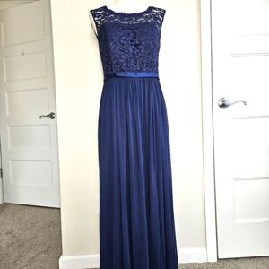 David's Bridal Elegant Navy Lace Evening Gown, Size 10