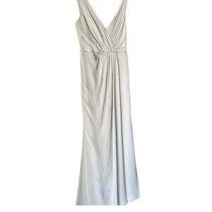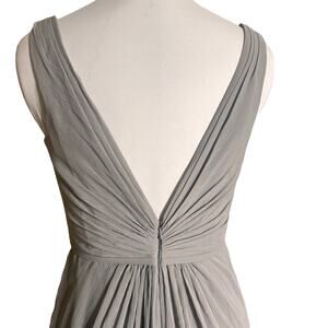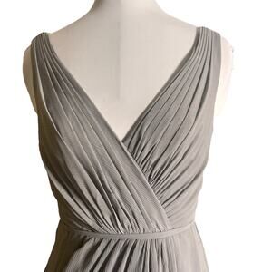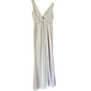 David's Bridal Faux Wrap Grey Bridesmaid Dress Bust Maxi F19585 Mercury sz 0 XS