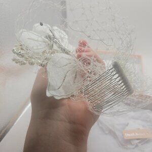 Davids Bridal Floral Headpiece with Pearls and Crystals Hair Clip Formal Prom