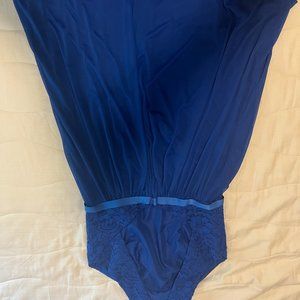 David's Bridal Floral Lace High Neck Short Dress - Horizon Blue - Size 8