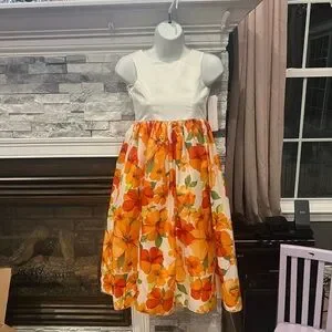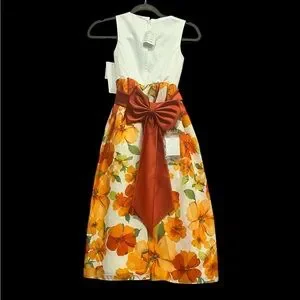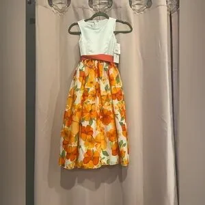 David's Bridal Floral Orange and White Child's Dress