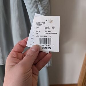 David's Bridal Flounced Chiffon Maxi Halter High Neck Dusty Sage Dress Size 6