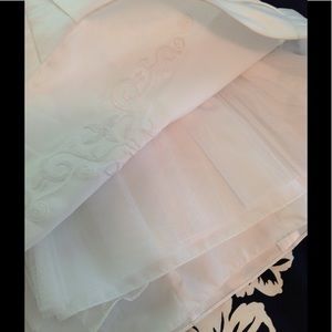 St Tropez White Flower Girl Dress. Sleeveless white maxi. Beautiful details on front. Non functioning covered buttons on back w/zipper for easy on/off! Double Lined with poly lining close to skin and tulle for fullness! Approx 11.5" armpit to armpit. 29" from top of neck to hem! Size 3. Worn once! Soooo cute! Princess like!!
