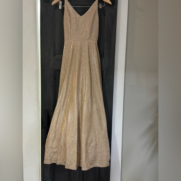 David’s Bridal Speechless Glitter Knit Spaghetti Strap Gown Gold Size 1
