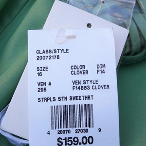 David's Bridal Womens Plus Sz 16 Green Satin A-Line Draped Gown Beaded Sweetheart Neckline