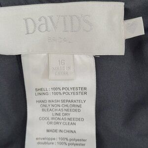 The David's Bridal Graphite Grey Chiffon Pleated Back Tie Bridesmaid Dress in size 16 is a elegant and sophisticated choice for any formal occasion. With a sleeveless design, V-neckline, and pleated back accents, this A-Line dress exudes a timeless and classy vibe. Made from polyester chiffon fabric, this long dress is perfect for weddings, parties, or cocktail events in the summer, fall, or spring seasons. The hand wash only care instruction ensures the dress remains in pristine condition, making it a wonderful addition to any woman's wardrobe.