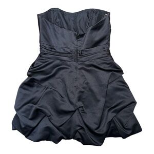 This stunning strapless gown by David's Bridal features a deep charcoal gray hue, perfect for cocktail events. The ruched skirt adds a voluminous touch, while the fitted bodice with a sweetheart neckline ensures a flattering silhouette.