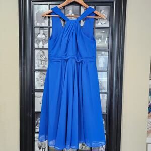 David's Bridal Halter Crinkle Chiffon Mini Dress Horizon Size 10 NWT