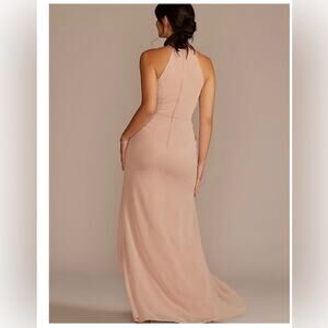 David’s Bridal High neck chiffon bridesmaid dress maxi steel blue 2 new