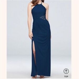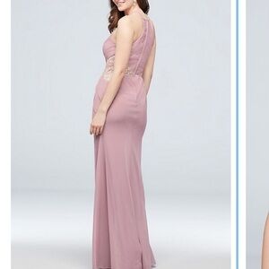 David's Bridal High-Neck Mesh Dress w/ Lace Inset Bridesmaid/Prom/Formal