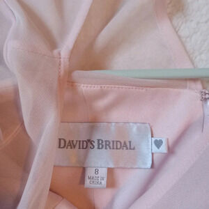 David's Bridal Illusion Short Sleeve Mesh Dress Size 8 Petal Pink
