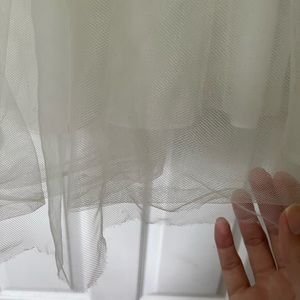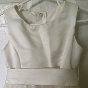 Charming ivory dress with a satin bow. Sleeveless and elegant. Ideal for formal events.