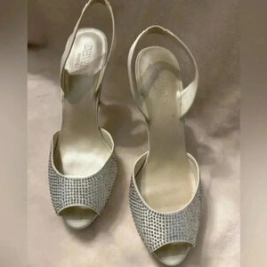 David’s Bridal Jessa Rhinestone Heels Slingback Crystal Peep Toe Womens Size 8.5