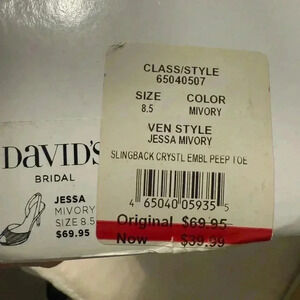 David’s Bridal Jessa Rhinestone Heels slingback Crystal Peep Toe in Ivory. NIB(No lid on box just bottom of box) Women’s size 8.5 heel height 4 inches SFPF HOME.