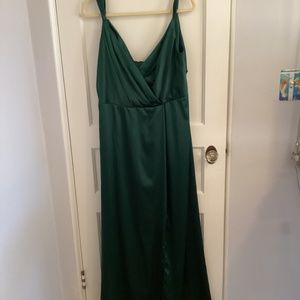 David’s Bridal: Juniper Green Satin Dress Size 18.