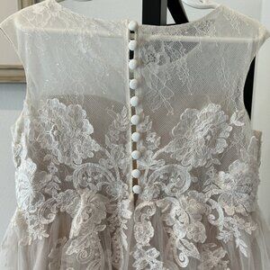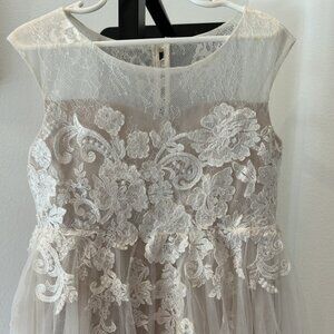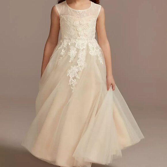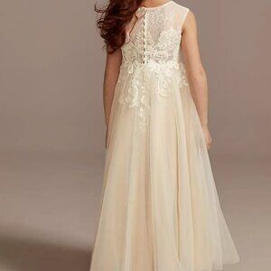 David's Bridal Lace Illusion & Tulle Flower Girl Dress WG1411 Ivory/Champagne 6