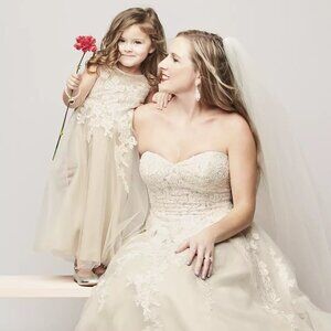 David's Bridal Illusion and Tulle Flower Girl Dress with Applique