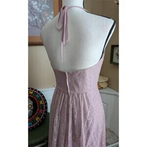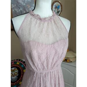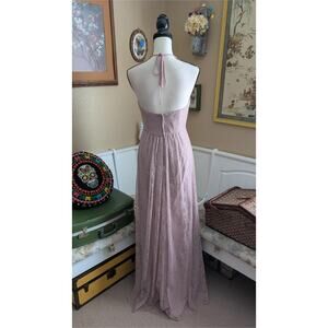 David's Bridal Lavender "Quartz" Lace Halter Maxi Bridesmaid Dress