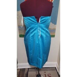 Davids Bridal Light Blue Strapless Ruched Short Bridesmaid Cocktail Dress 14