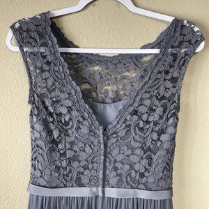 David's Bridal Long Bridesmaid Dress with Lace Bodice pewter, sz 2, F19328