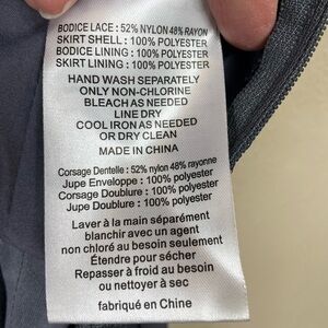 David's Bridal Long Bridesmaid Dress with Lace Bodice pewter, sz 2, F19328, there are some water marks around the bottom hem and bottom hem has a few snags (see photos) it is really long so could be hemmed but you also don’t notice if dress is on, otherwise in really great condition. No issues on rest of dress.