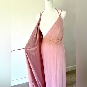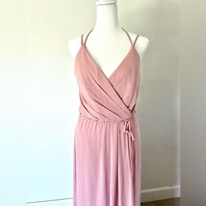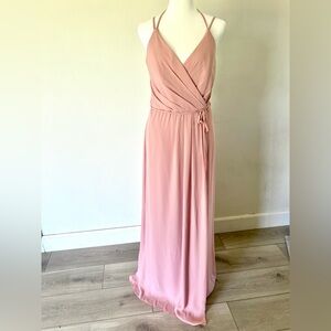 NWT David’s Bridal Long Georgette V-Neck Pink Ballet True Wrap Bridesmaid Gown