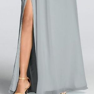 David's Bridal Long One-Shoulder Crinkle Chiffon Dress Mystic color, size 2. Only wore once to inside wedding.