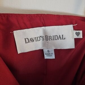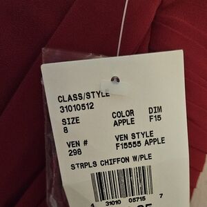 Davids Bridal Long Strapless Chiffon Dress w/Pleated Bodice Apple Red size 8 NWT