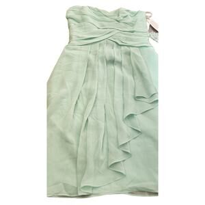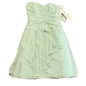 Davids Bridal MInt Strapless Short Crinkle Chiffon Dress Cascade Size 4 NWT NEW