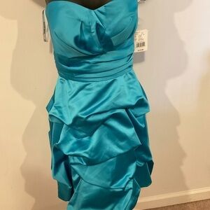 David’s Bridal Malibu Blue Ruched Short Prom Dress
