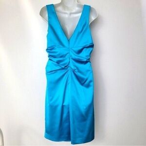 David’s Bridal Malibu Blue Satin Ruched Draped Neck Dress Size 8